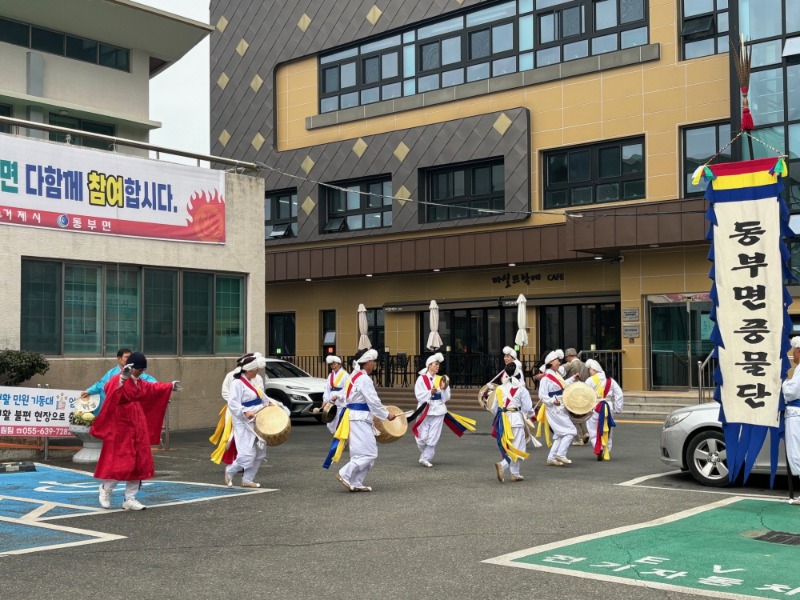 이날 지신밟기 행사에는 주민자치회 프로그램 풍물 수업 수강생 “동부면 풍물단”이 참여하여 신나는 농악 한마당을 펼쳤다. 동부면 풍물단은 동부면사무소 및 관내 마을을 순회하며 면민들의 건강과 안녕을 기원했다.