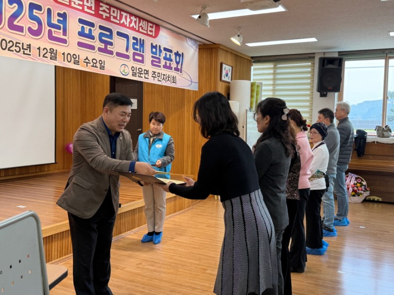 일운면 주민자치회(회장 여철근)가 지난 10일 ‘2025년 주민자치센터 프로그램 발표회’를 개최하여 성황리에 마무리했다.