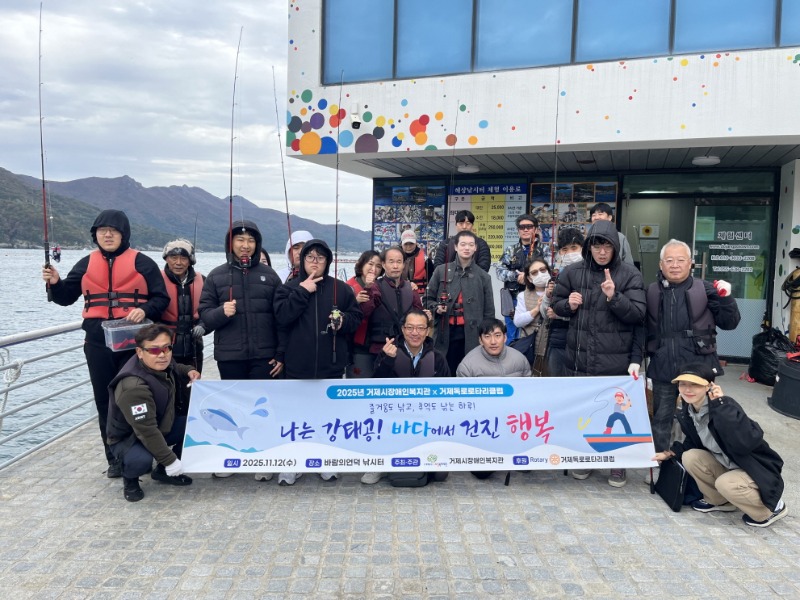거제시장애인복지관(관장 우성기)은 2025년 11월 12일(수), 남부면 바람의언덕 해상낚시터에서 거제독로로타리클럽(회장 정정수)과 함께 발달장애인 대상 ‘바다 낚시체험’ 프로그램을 성황리에 진행했다.