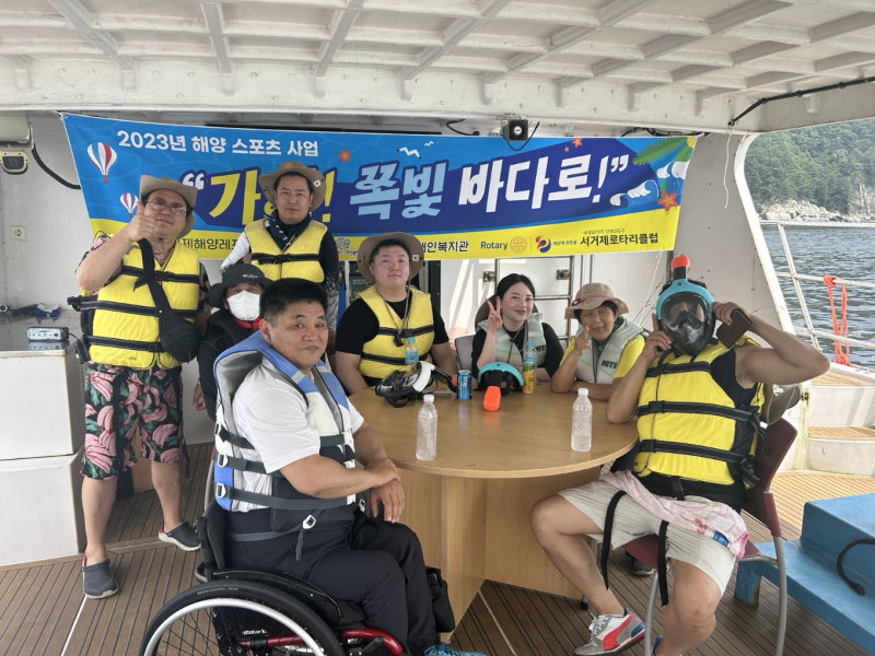 이날 행사는 일운면 소재 거제해양레포츠센터에서 진행되었으며, 성인 장애인과 서거제로타리클럽 회원 40여 명이 참여하여 요트 체험, 스노클링, 패들 보드 등 신나는 여름 물놀이 활동을 즐겼다. 안전하고 즐거운 체험을 위해 공동주관 단체인 서거제로타리클럽 회원과 장애인 참여자가 1:1매칭을 지원하여 장애·비장애 구분없이 모두가 즐기는 시간이 되었다.