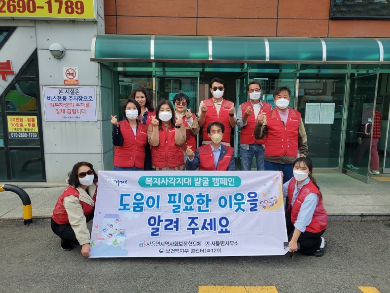 이번 캠페인은 사등면 내 유동인구가 많은 신촌마을 대교버스터미널에서 지역주민 및 상가 상인들을 대상으로 복지사각지대 홍보물품을 전달하며 1시간 가량 진행됐다.
