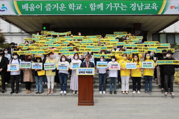 박 교육감은 앞선 '2021년 전국 교육감 공약 이행 및 정보 공개 평가'에서 '최고 등급(SA)'을 받은 바 있으며 공약 추진율 98.93%를 기록했다.
